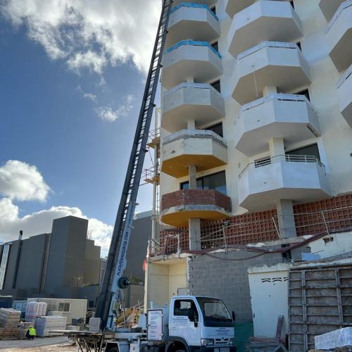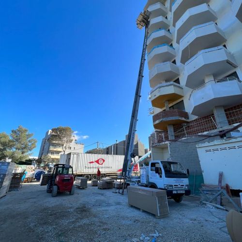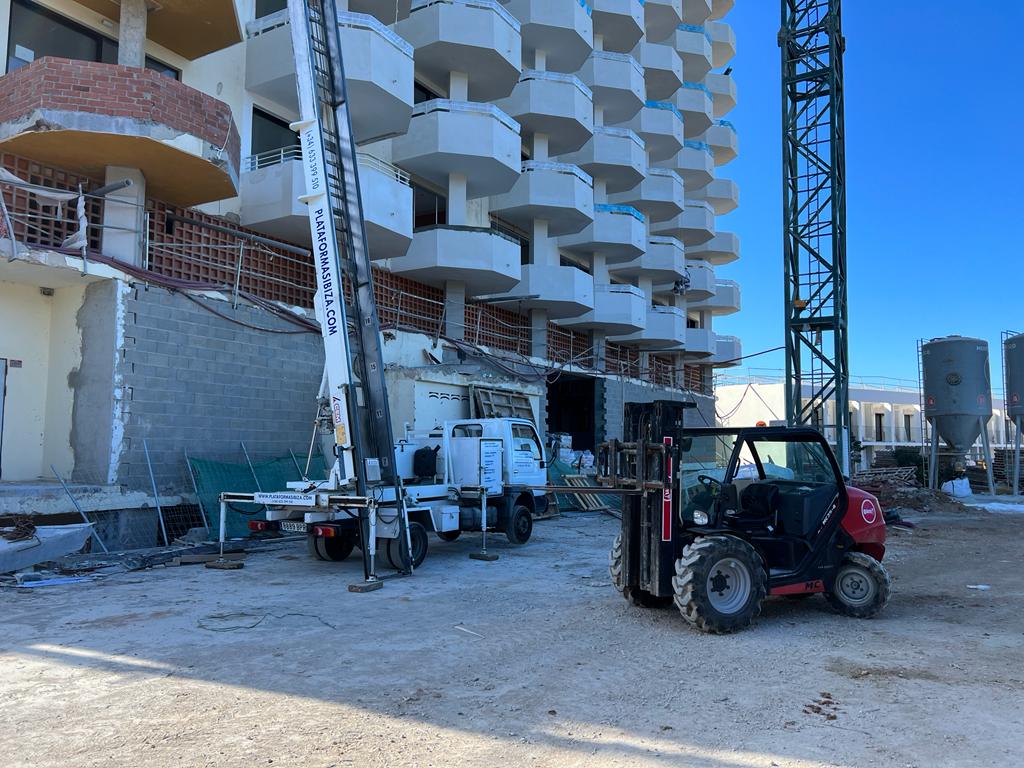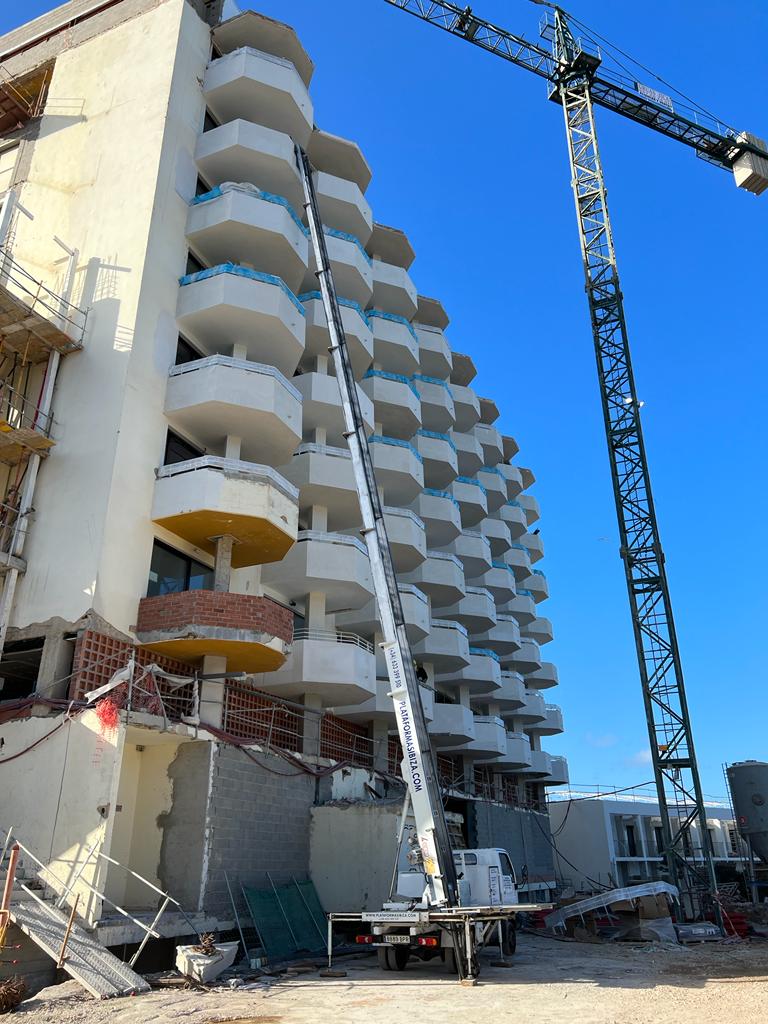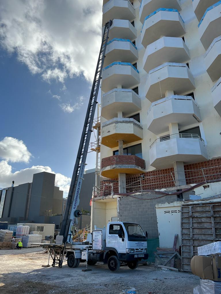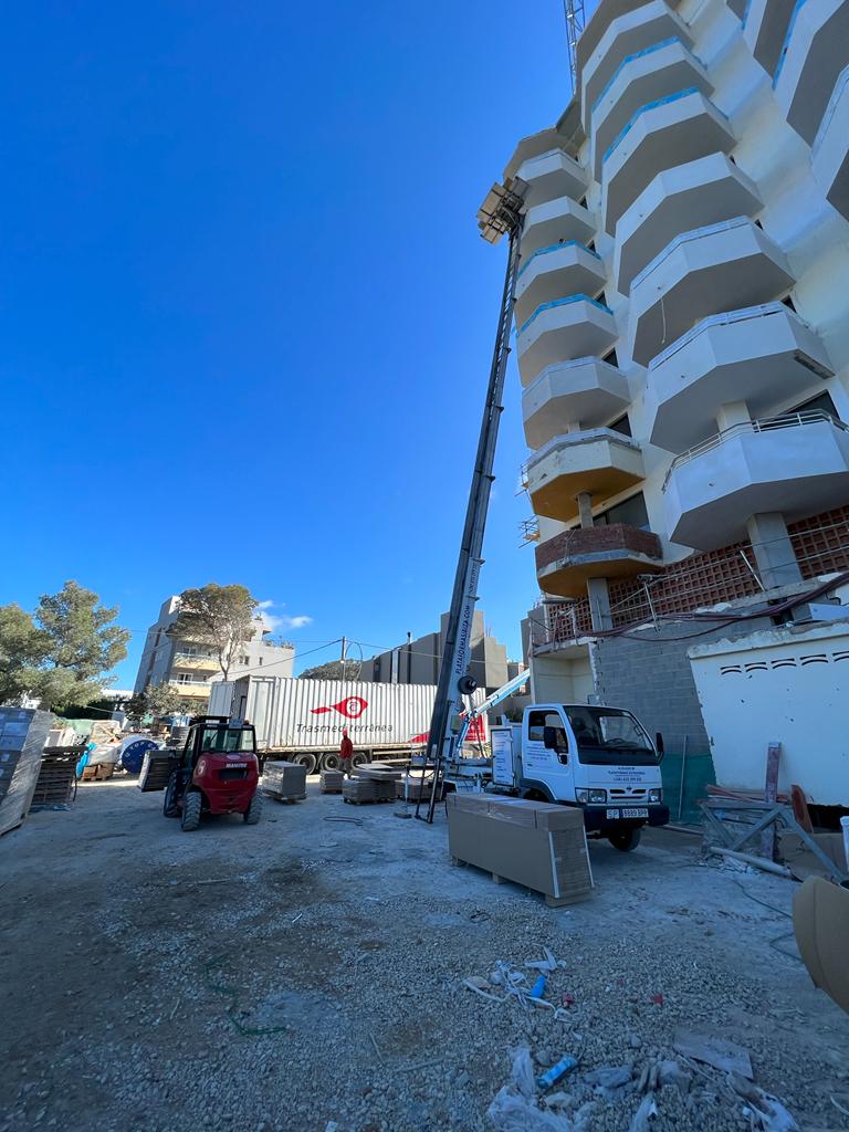 Os enseñamos un nuevo trabajo llevado a cabo por el equipo de Plataformas Ibiza. En este caso hemos colaborado con una empresa para la reforma de un hotel 5 estrellas en Ibiza de 26 metros de altura.