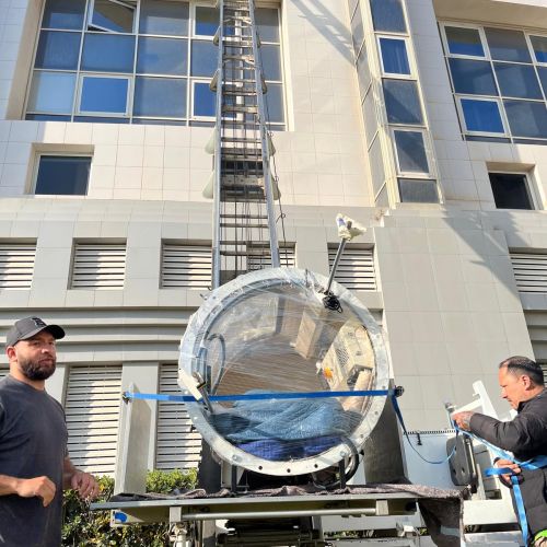 Hoy hemos realizado la elevación de una cámara hiperbárica de 250kg a la planta de arriba de una empresa.