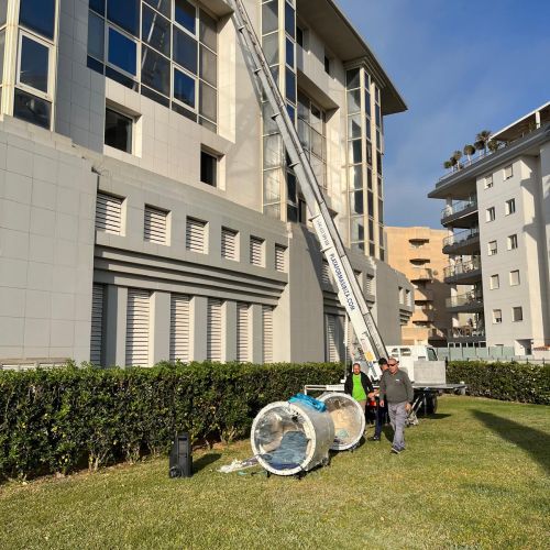 Trabajamos en todos los municipios de la isla: en este caso utilizamos nuestra plataforma elevadora en el de Eivissa, alquilable por horas (mínimo 3).