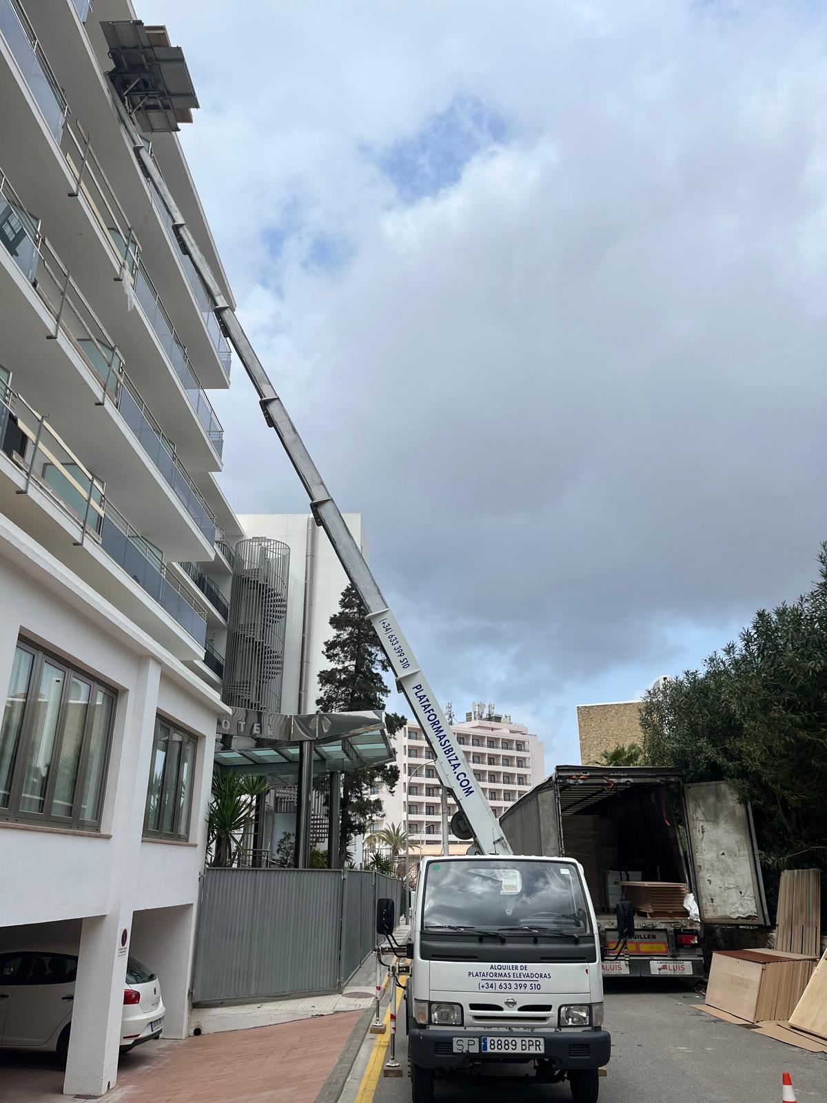 Hoy queremos mostrarte otro ejemplo real de mudanza en Ibiza en la que hemos utilizado nuestra plataforma elevadora.