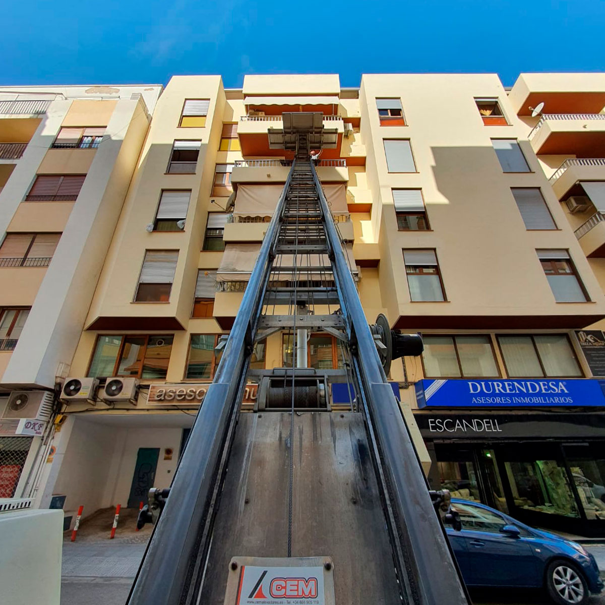Trabajamos en todos los municipios de la isla, en este caso utilizamos nuestra plataforma elevadora en el de Eivissa.