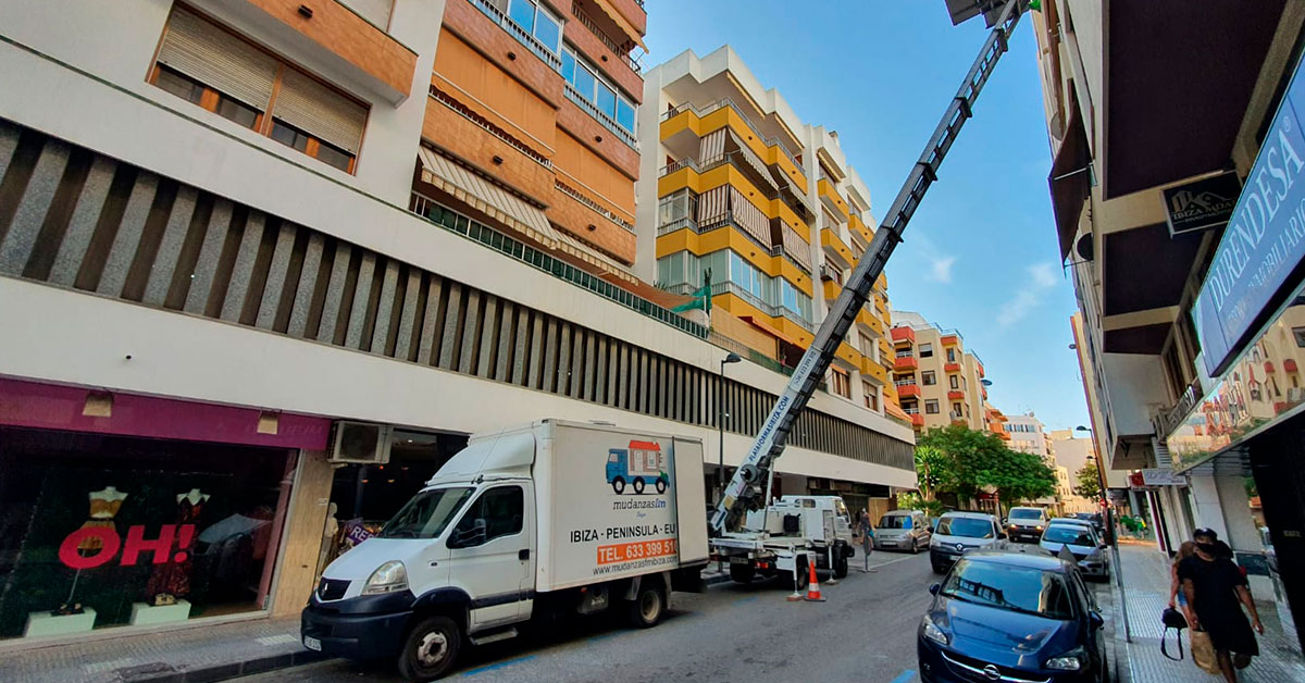 Os enseñamos una mudanza en Ibiza que hemos realizado con nuestra plataforma elevadora.